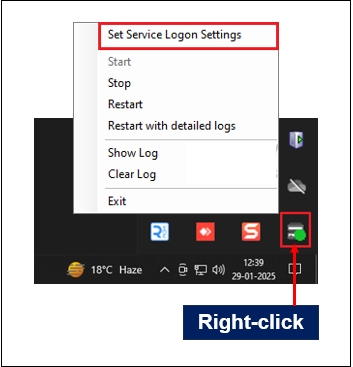 Right-click on the SmartSync Service icon. The following screen is displayed.