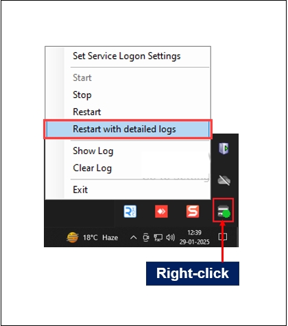Step Result: The service restarts and the advanced logging is enabled to log detailed information.