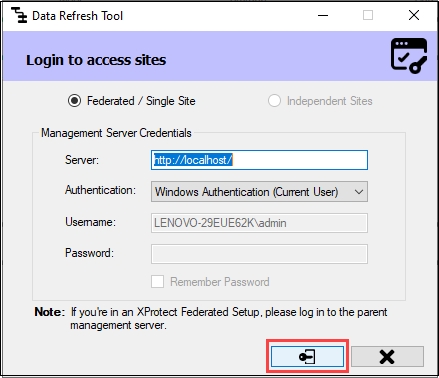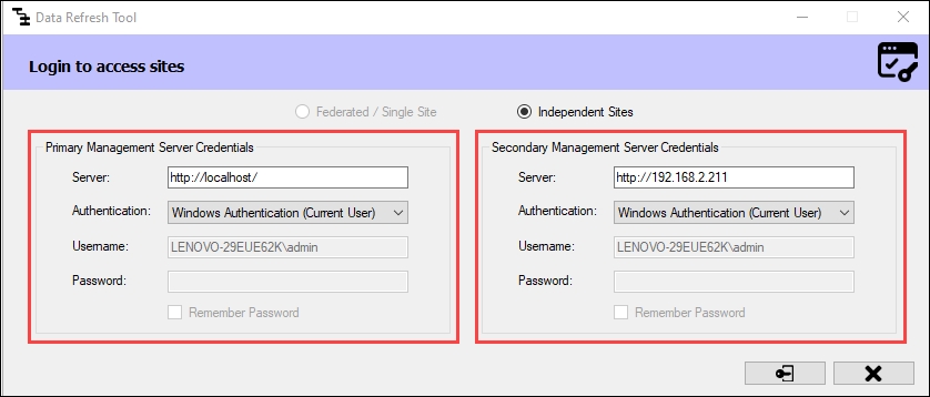 b. If Refresh is chosen in a Federated/Single Site, the following screen appears: