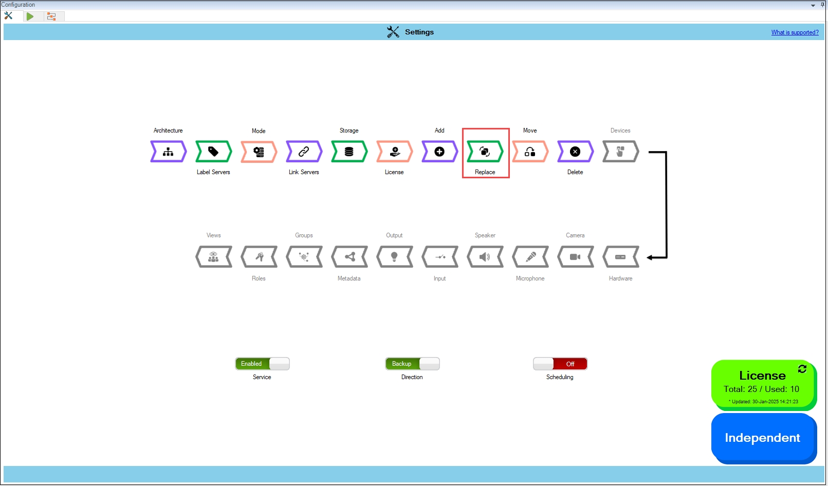 Backup mode: Replacing a camera on the Primary recorder instantly triggers the same replacement on the linked Secondary.