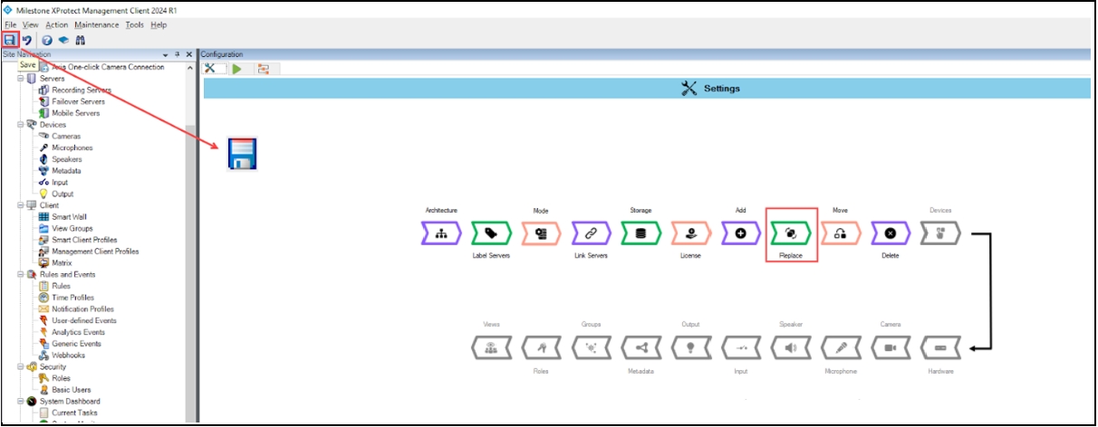 When a camera reaches end-of-life, Milestone XProtect allows you to swap it out in place, ensuring all views, rules, and permissions remain intact. In an active-active environment, you would typically have to redo that swap on every redundant recorder. RMF’s Replace Camera feature does it for you automatically: