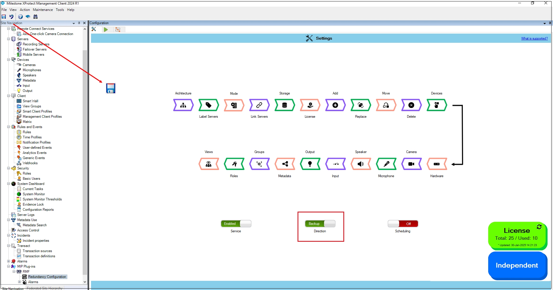 In this mode, the RMF SmartSync service copies changes from the primary site to the secondary site. During the initial configuration, set the sync direction to Backup Mode.