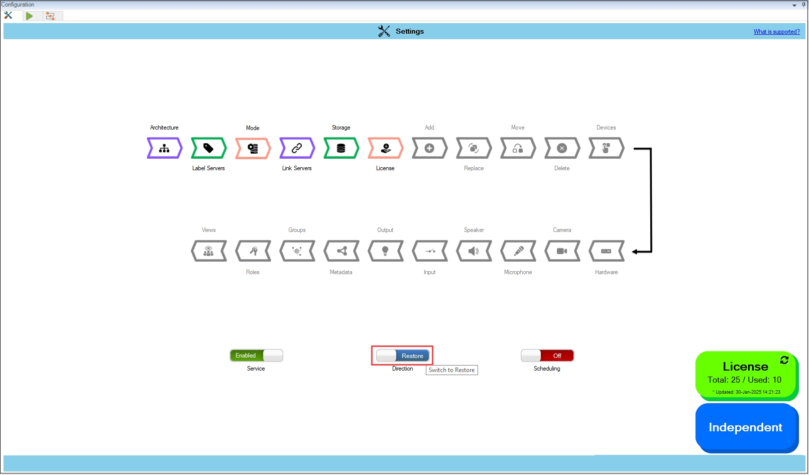 In cases where XProtect is Federated or Independent, and the primary site has been offline, users may have made changes directly on the secondary site. Restore Mode allows the administrator to restore those changes from the secondary site to the primary, ensuring flexibility in management.