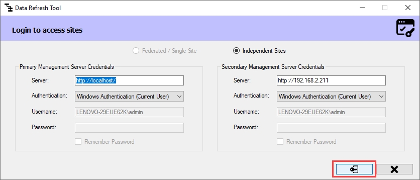 Step Result: The Data Refresh Tool Dialog box appears.
