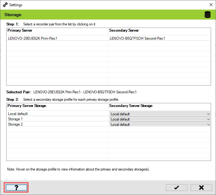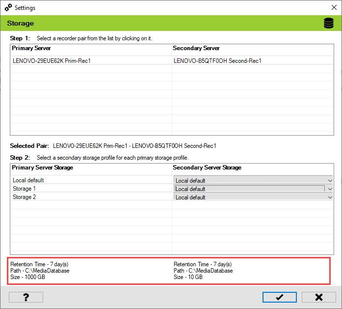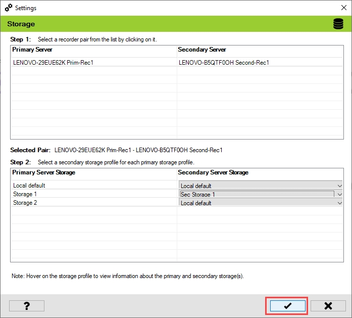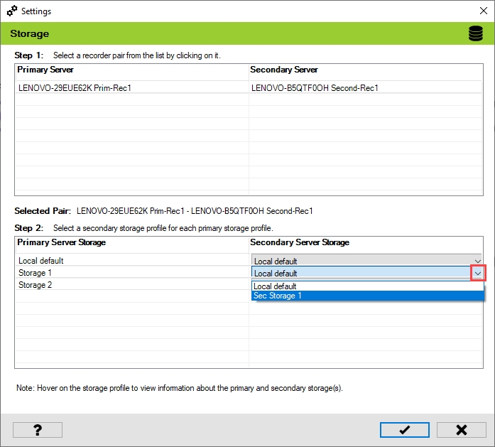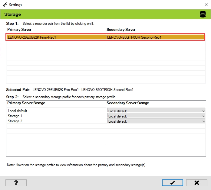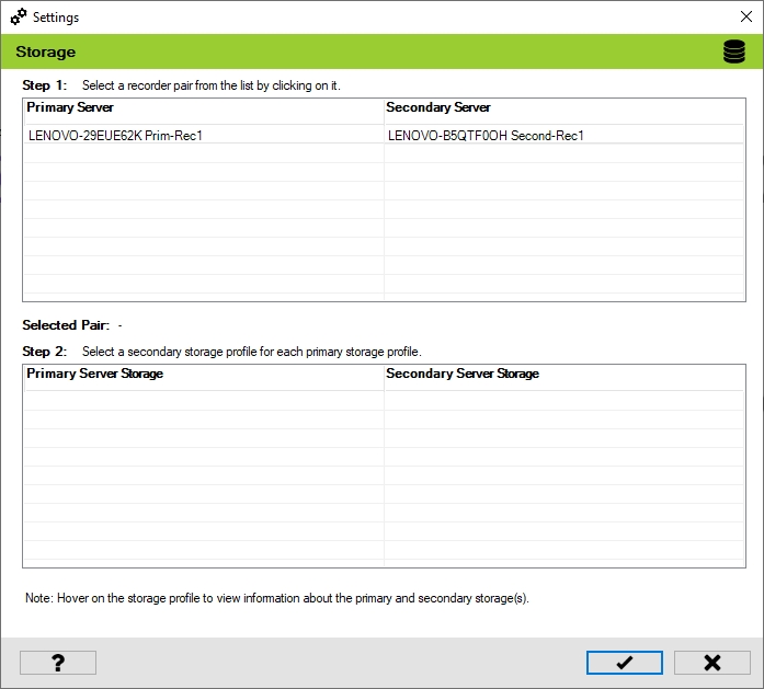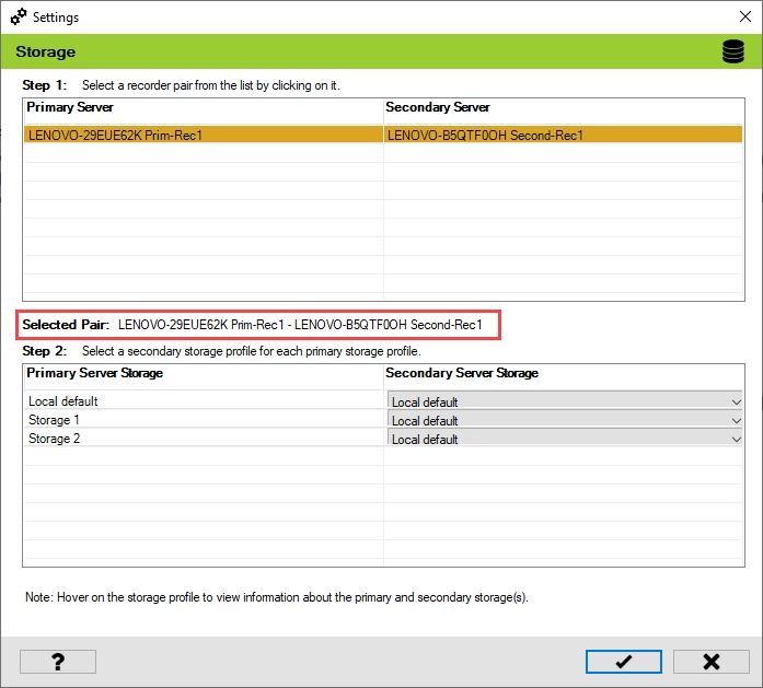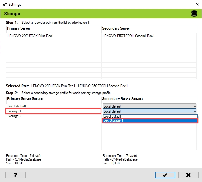 Select one of the Primary and Secondary recorder pairs from the list of linked servers that were associated in the previous step.
