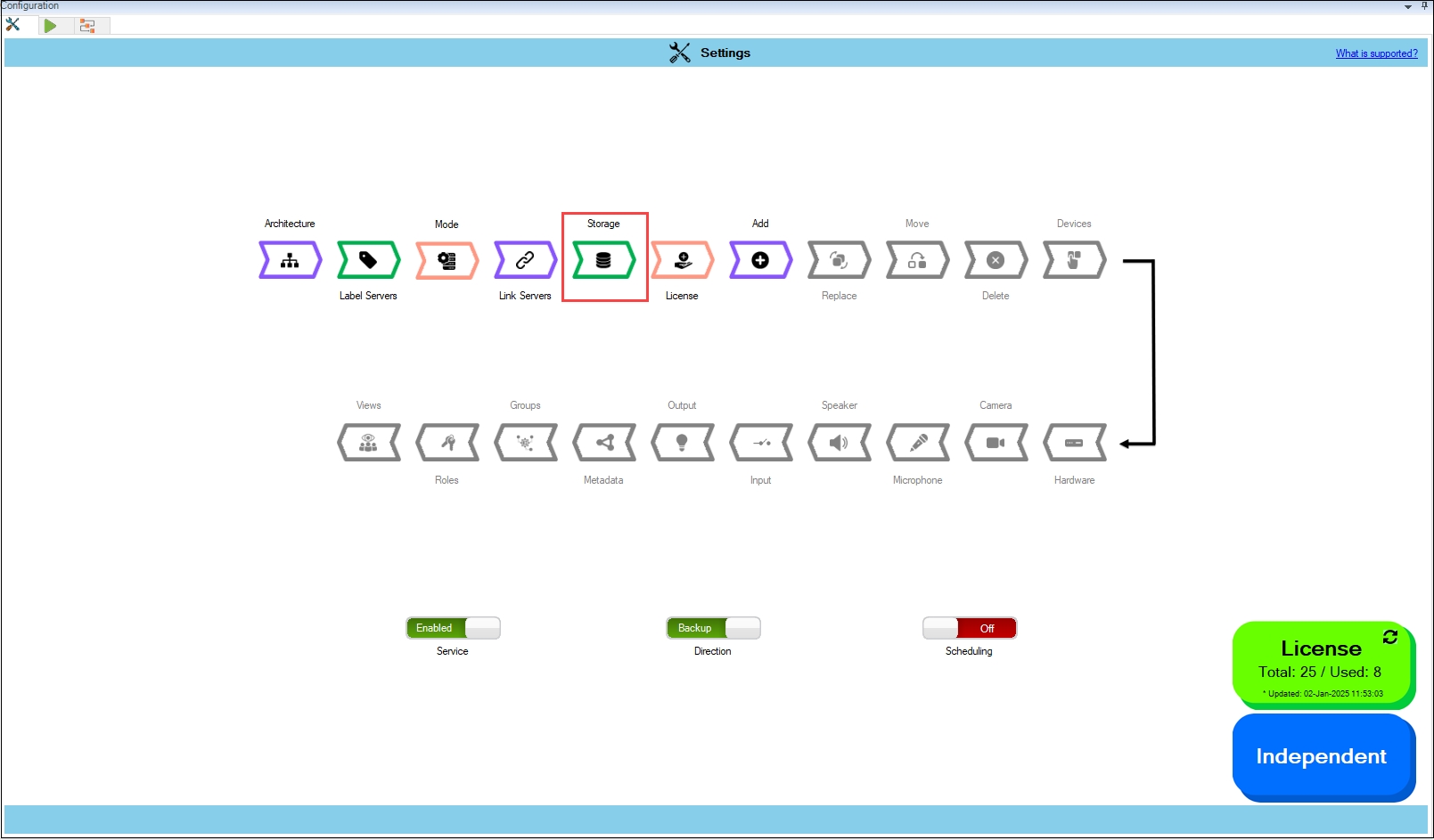 a. For an Independent architecture, the following screen appears: