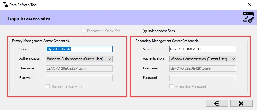 For Federated/Single Site, the following screen appears: