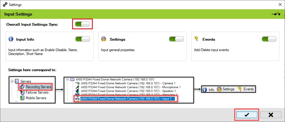 Use this option to synchronize Input settings between the Primary and Redundant sites.