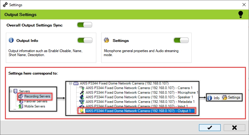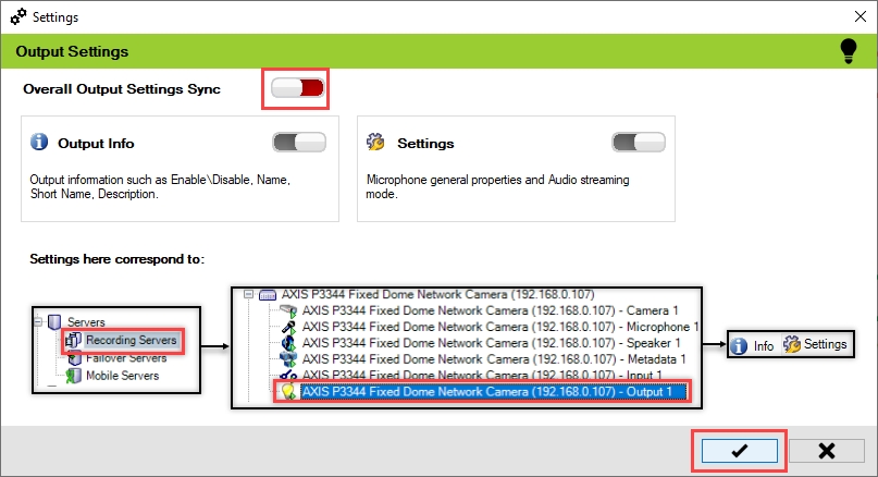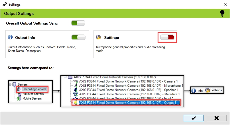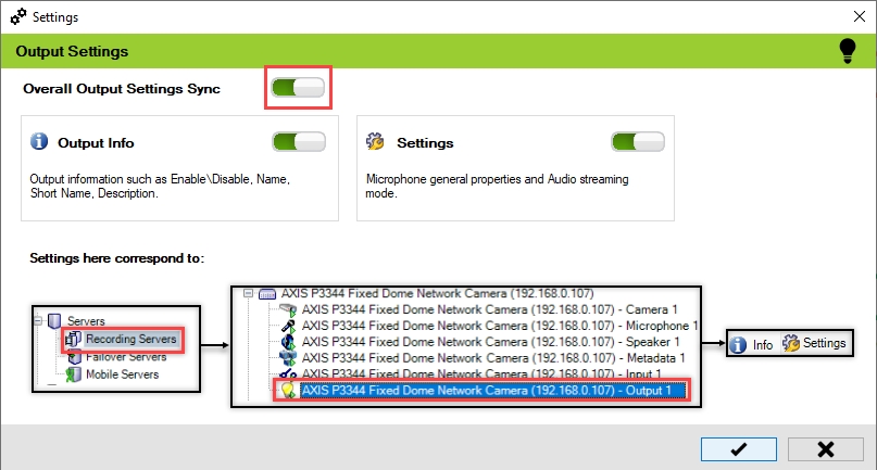 Enable the Overall Output Settings Sync to enable all the individual device output settings. Enable/Disable different sub-settings as needed.