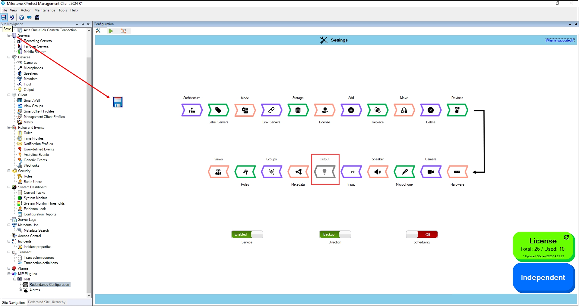To disable and synchronize the device output settings, perform the following steps:
