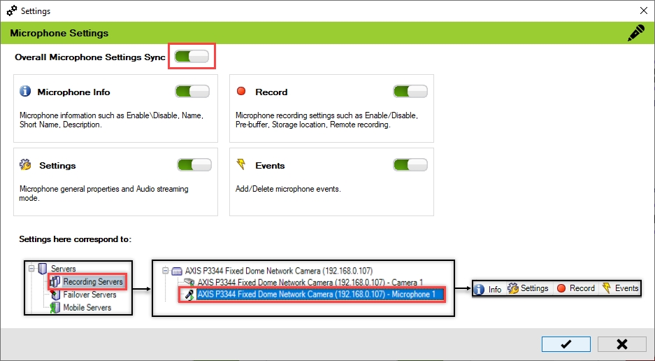 Enable the Overall Microphone Settings Sync to enable all the individual microphone