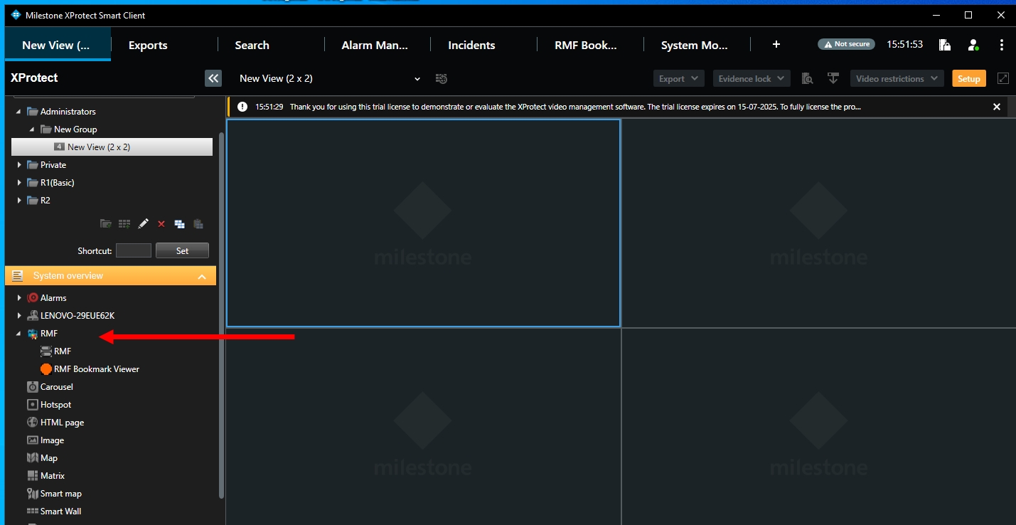 The RMF Smart Sync service automatically generates RMF views that correspond to native Milestone Smart Client views. As the admin makes changes to view layouts for each role, these changes are automatically synchronized into the corresponding RMF views. For more details, refer to Synchronize Views.