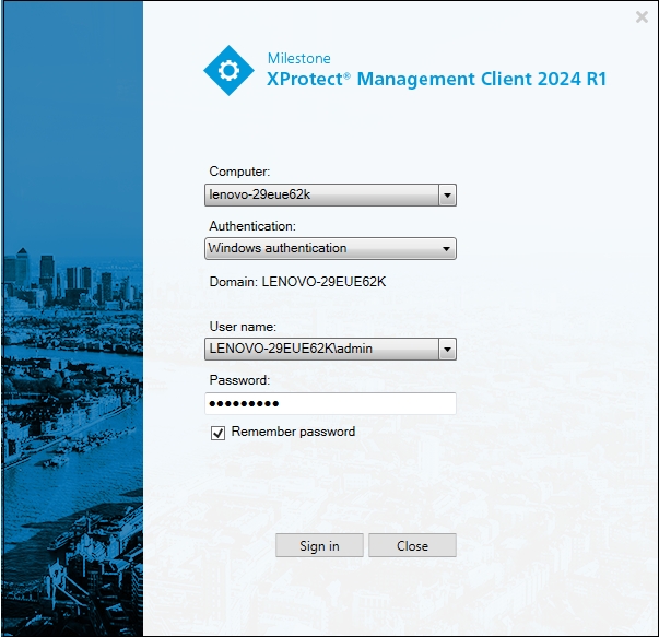 Launch the XProtect Management Client on the machine where the RMF Services are installed and sign in to the application.