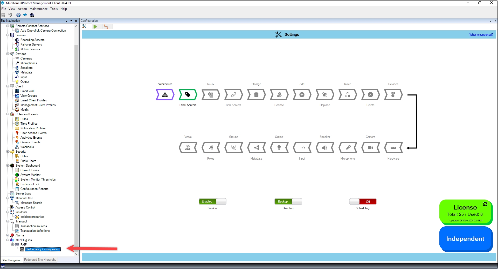 Expand the RMF Expand button to view the Redundancy Configuration.