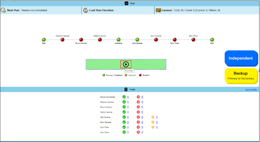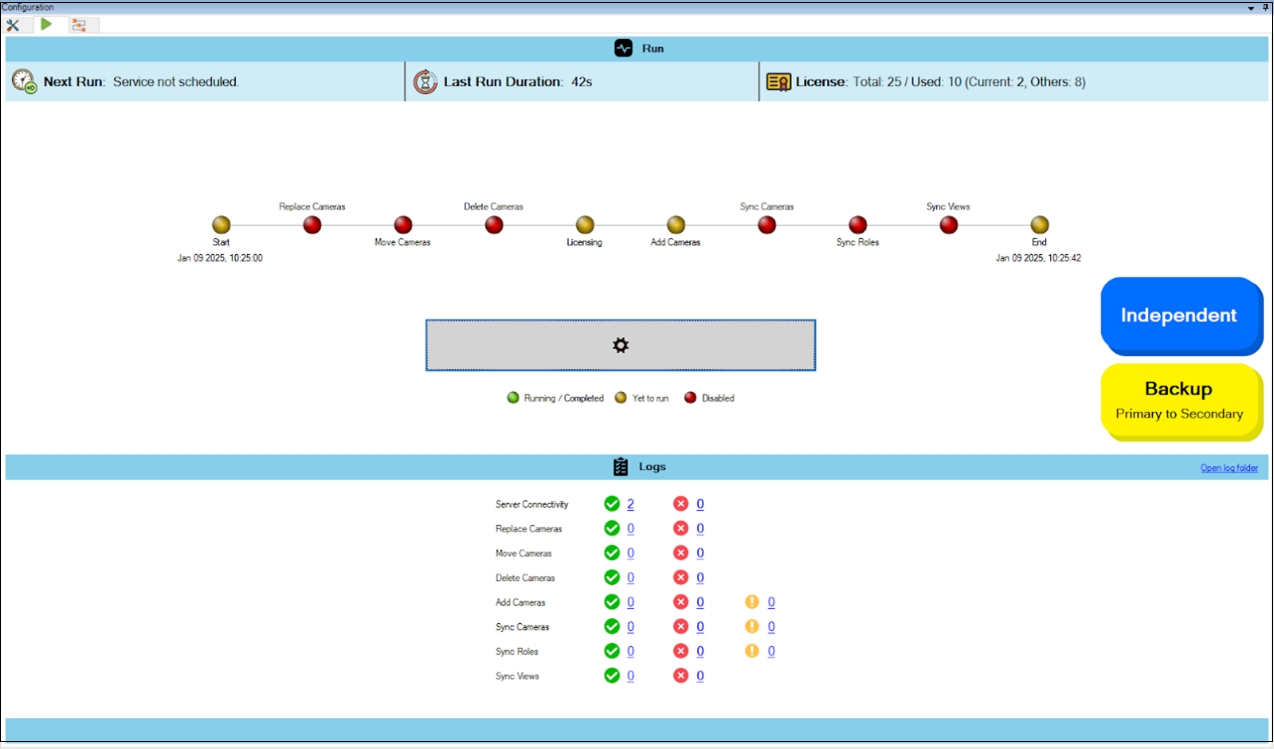 The Open Log Folder feature allows users to access the directory where execution logs are stored. This feature provides direct access to log files, allowing you to review detailed records of run activities, troubleshoot errors, and analyze system behavior. It helps in debugging issues by offering a comprehensive view of past executions.