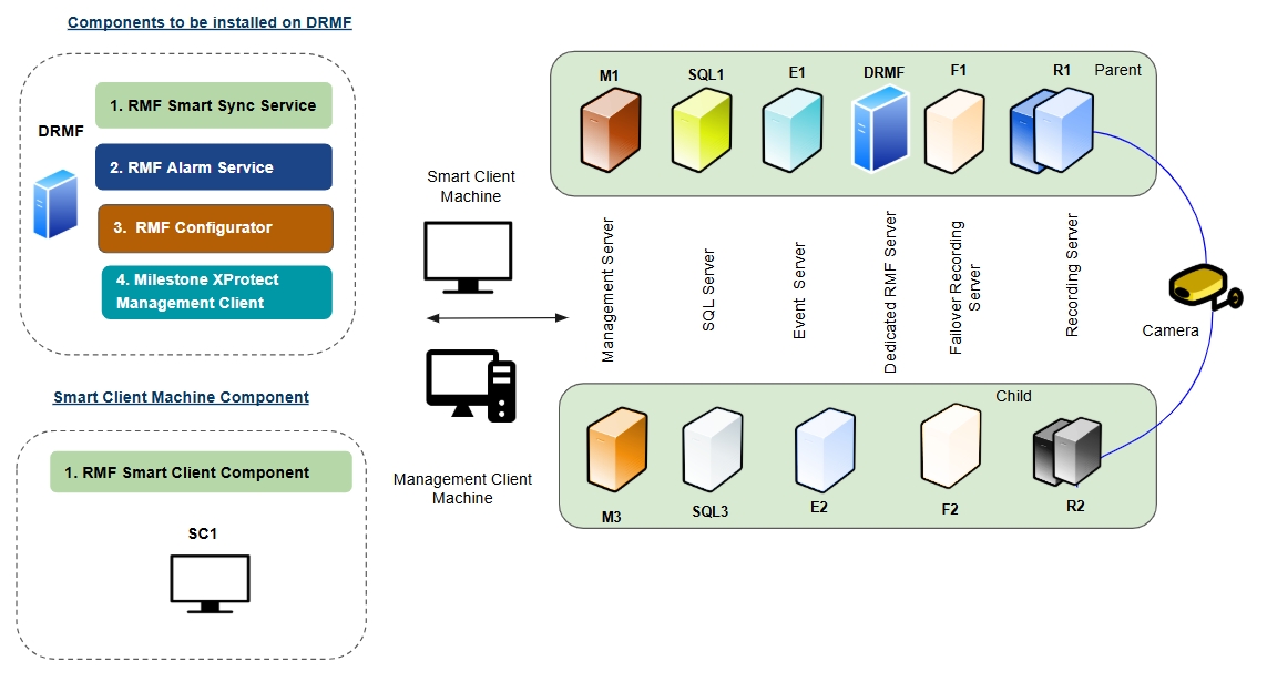 The RMF Smart Client Component is installed on the Smart Client Machine (SC1).