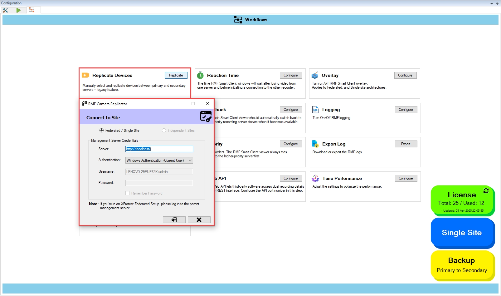 It enables users to manually select and replicate cameras between primary and secondary data centers. It also identifies devices present in one data center but absent from the other and provides a drag-and-drop interface for assigning and syncing them.